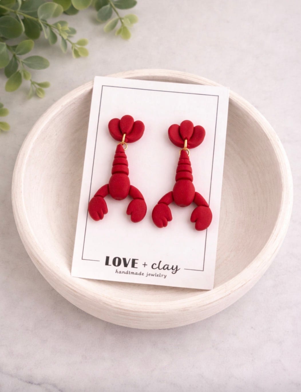 Bold, whimsical, and full of personality. These vibrant red lobster earrings are the ultimate summer conversation starter. Featuring a two-piece articulated design, they offer a subtle bit of movement that brings these little crustaceans to life. These are such a fun, playful addition to your collection! They have a great “New England Summer” or “Clambake Chic” energy.
